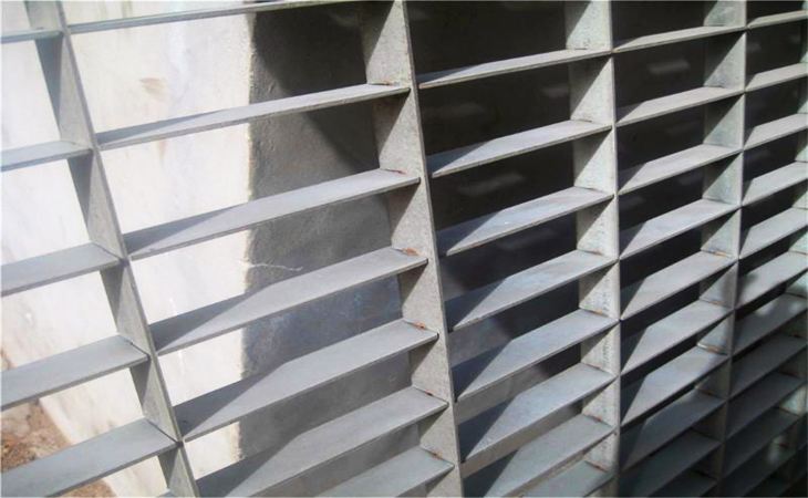 3、遮陽型插接鋼格板:其承載扁鋼開30度或45度斜槽,橫桿扁鋼開槽壓鎖成型。
